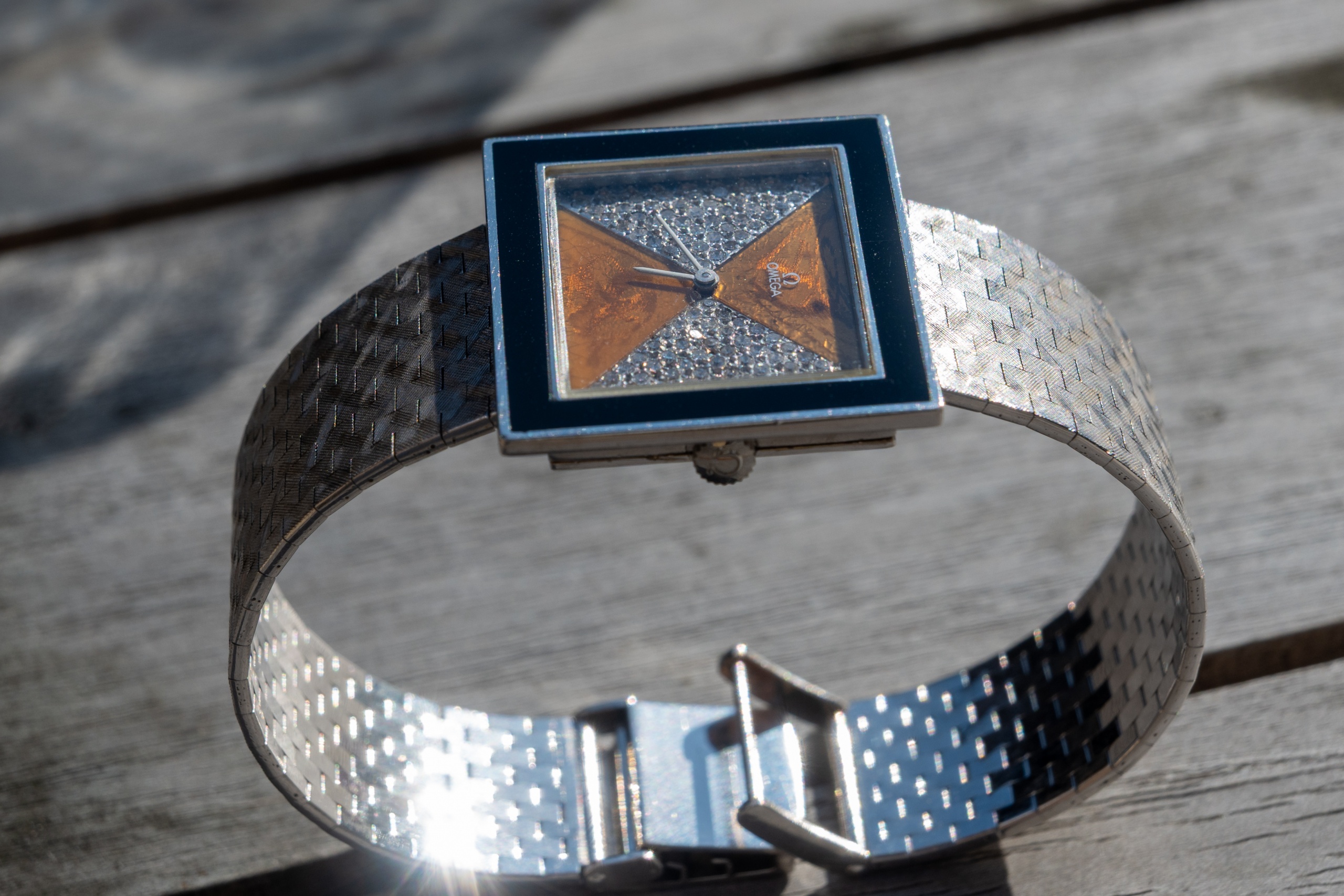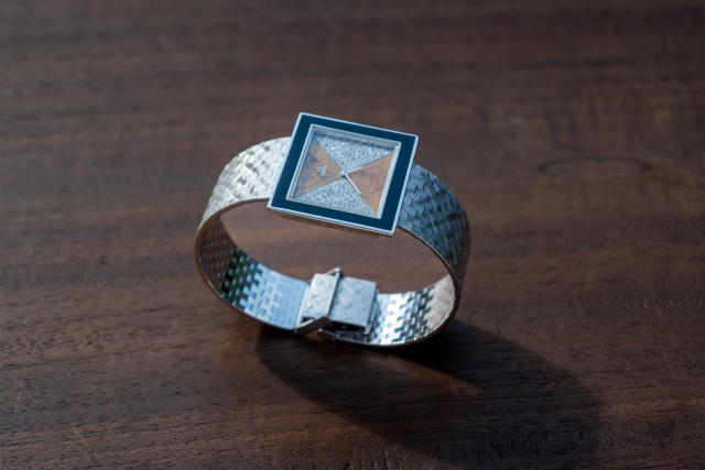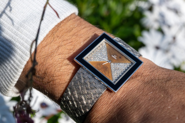 The watch is made out of 18k white gold, the bracelet has an amazing textured finishing. The square bezel is made out of onyx whitle the dial is made out of polished burl wood and diamonds. The craftsmanship to produce a masterpiece like this with gemstones and wood is incredible. De ‘Mille et une Nuits’ is a series of stories of middle east and south asian stories hundreds of years old.