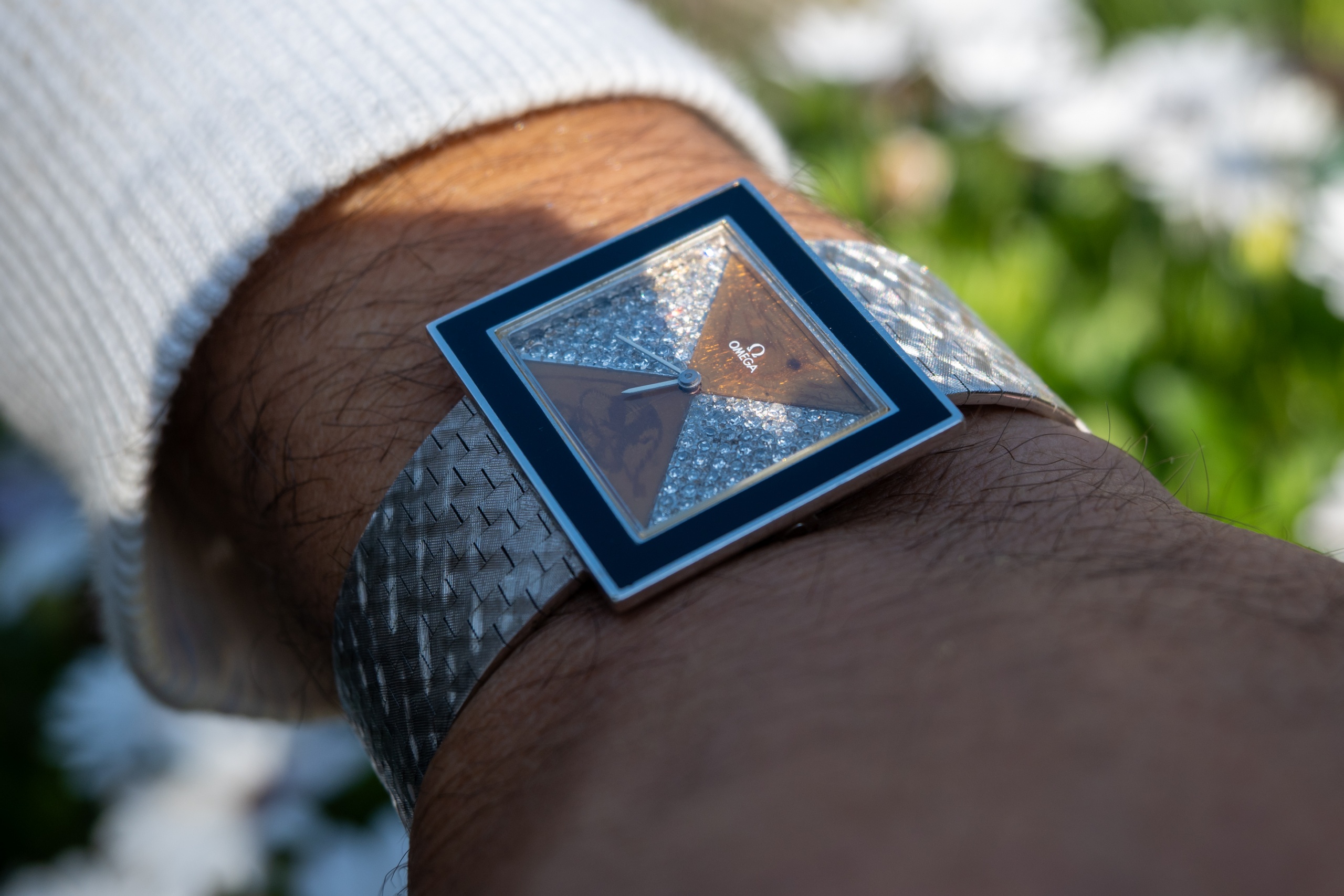 Extremely rare Omega High en Jewelry Creation from the ‘A Thousand and one Nights’ collection from the 1970’s. This collections existed of unique pieces made on request for clients in Saudi Arabia, Asia and important customers. There are just a handful of productions known, all featuring fascinating stone dials with diamonds and extravagant finishing.