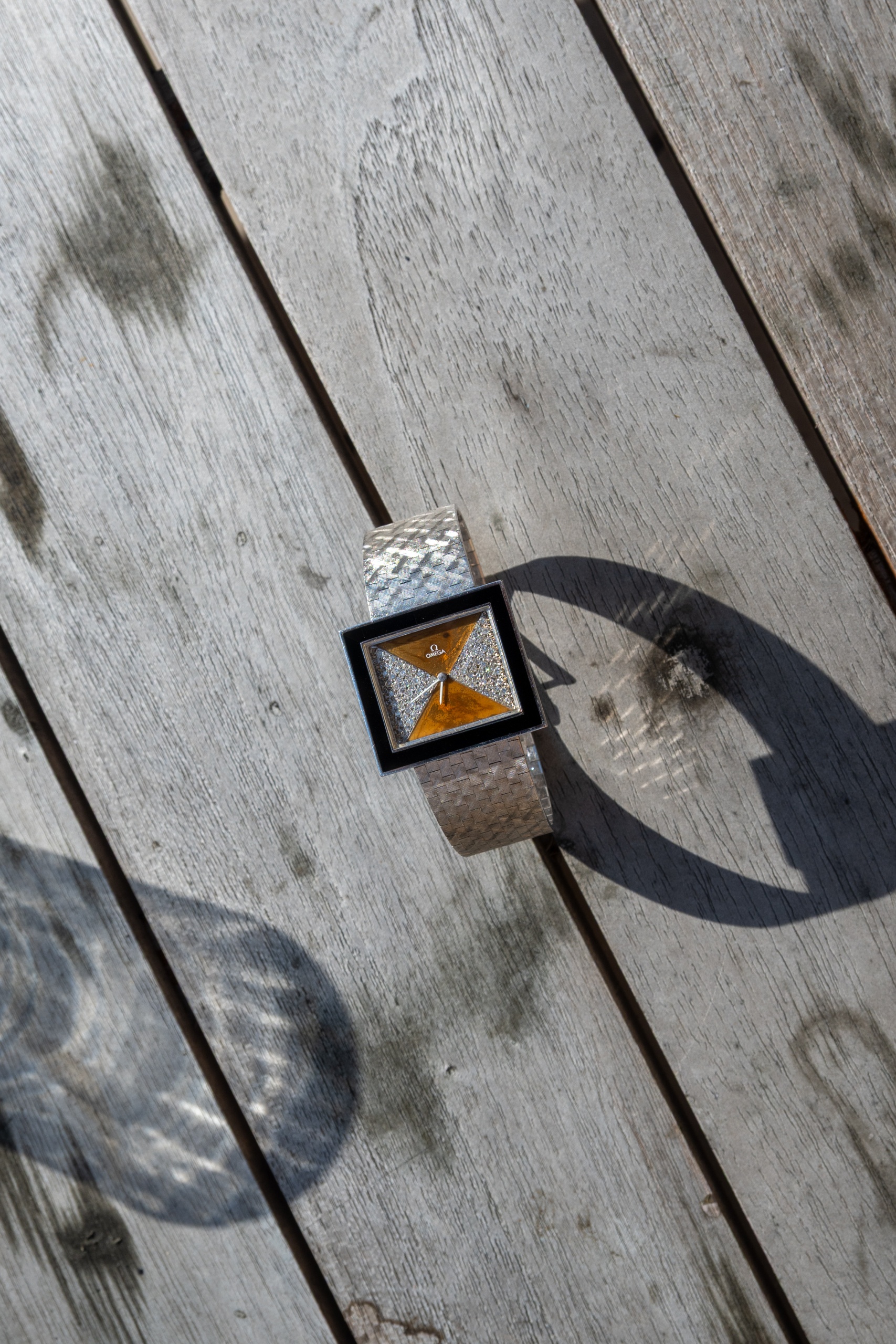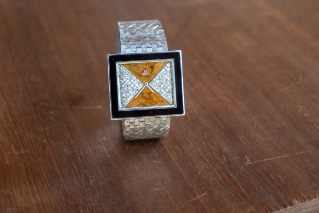 Omega is known for extreme high jewelry watches and accessories. The worked together with various artists like Raymond Munier, Luigi Vignando, Gilbert Albert, Andrew Grima, Franz Bette and many others. We consider this example to be created most likely by Luigi Vignando, he designed multiple unique Omega jewelry watches and ladies jewelry accesoires.